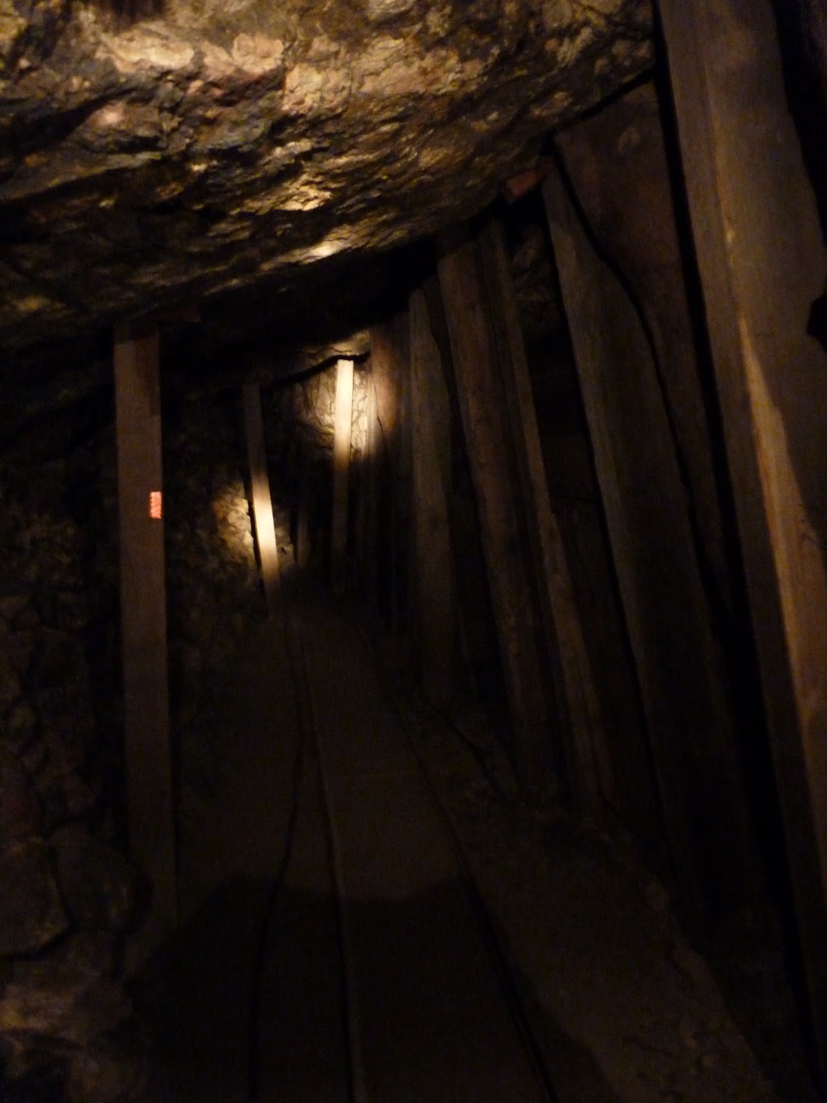 example of the fine workmanship of the miners – wooden supports, with spare rock used to line the tunnels. Built as